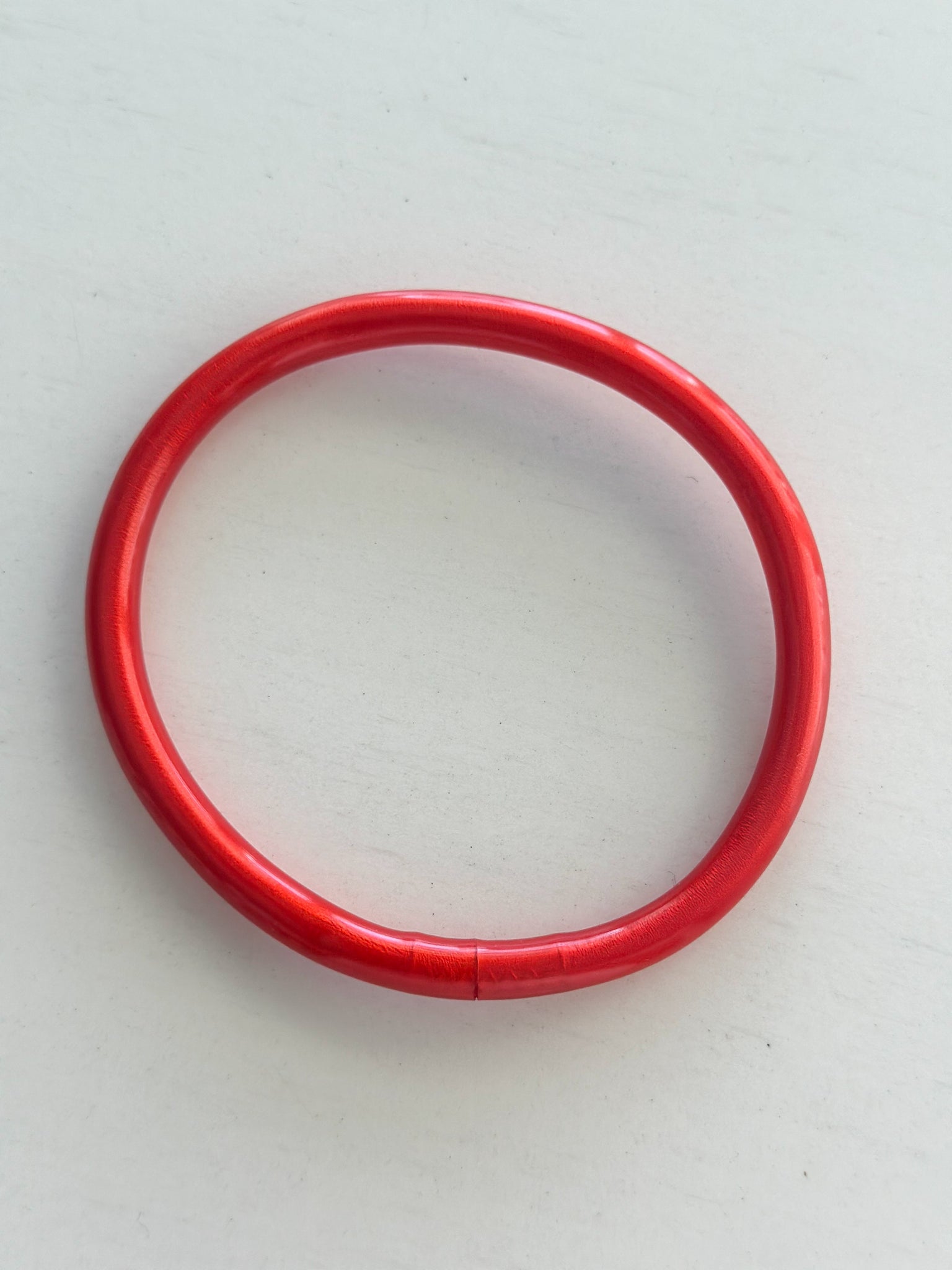 Look no further than the Jinny Jelly Bangle Bracelet! This trendy jelly bracelet is the perfect addition to your summer look and is sure to bring back fond memories of childhood.