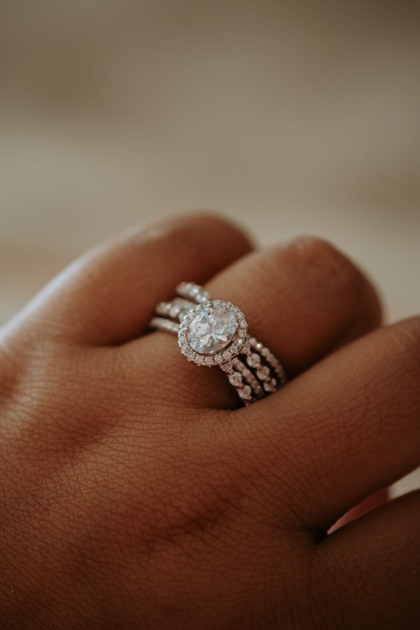 The Lylah Ring features an oval cut center stone surrounded by a single halo and accented with miniature cubic zirconia side stones. Elevate your style with this ring and it will add a sophisticated, sparkly touch to any look.