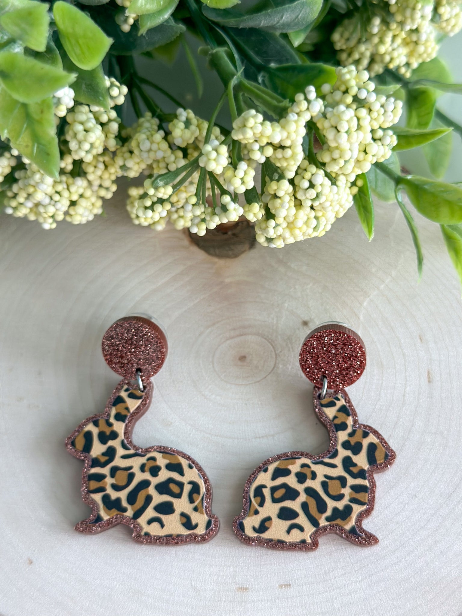 These fun and trendy "dangles" will add a touch of playfulness to any outfit. With a playful bunny design and animal print in bright colors, these earrings are perfect for dressing up any outfit. Made with 100% Acrylic, they are lead and nickel free, so you can wear them with peace of mind. Add some fun to your style with these adorable bunny "dangles".