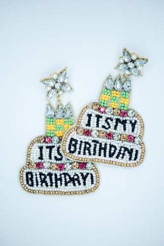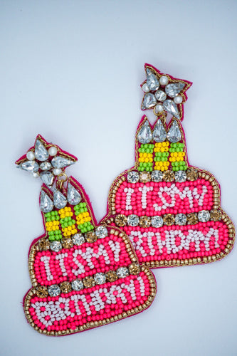 Happy Birthday Cake Seed Bead Earrings in Pink