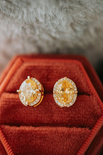 Too Much Heaven Oval Cut Citrine Gem Gold Stud Earrings
