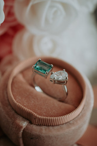 Trin Emerald and Pear Cubic Zirconia Sterling Silver Ring Open Size