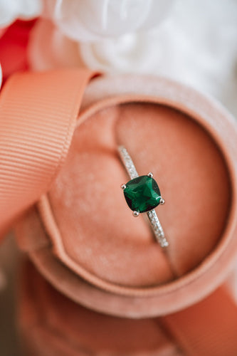 Sandy Emerald Cushion Sterling Silver Ring