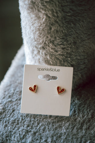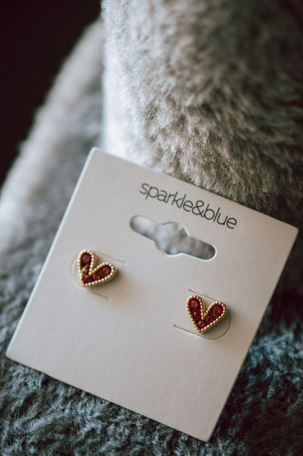 CZ Diamonds Hearts Dainty Stud Earrings - Red