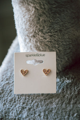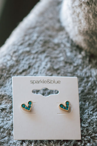 CZ Diamonds Hearts Dainty Stud Earrings - Turquoise