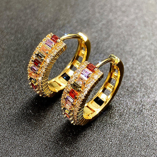 Gold Huggie CZ Hoop Sterling Silver Earrings