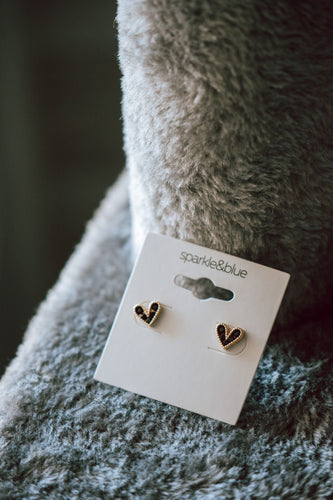 CZ Diamonds Hearts Dainty Stud Earrings - Black