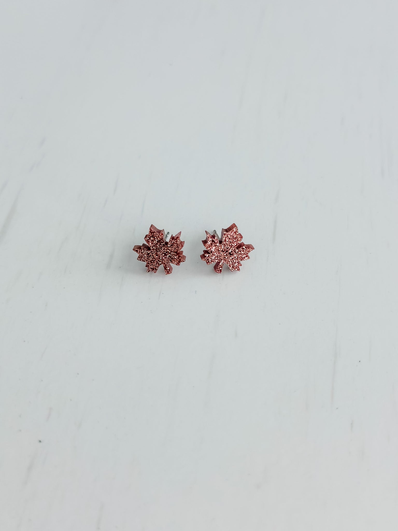 Look no further than the Leaves of Autumn Studs! These mini glitter leaf studs are the perfect way to add a touch of sparkle to any outfit. Made of acrylic and hypoallergenic titanium steel, these earrings measure approximately 1/4" and are the perfect fall accessory.
