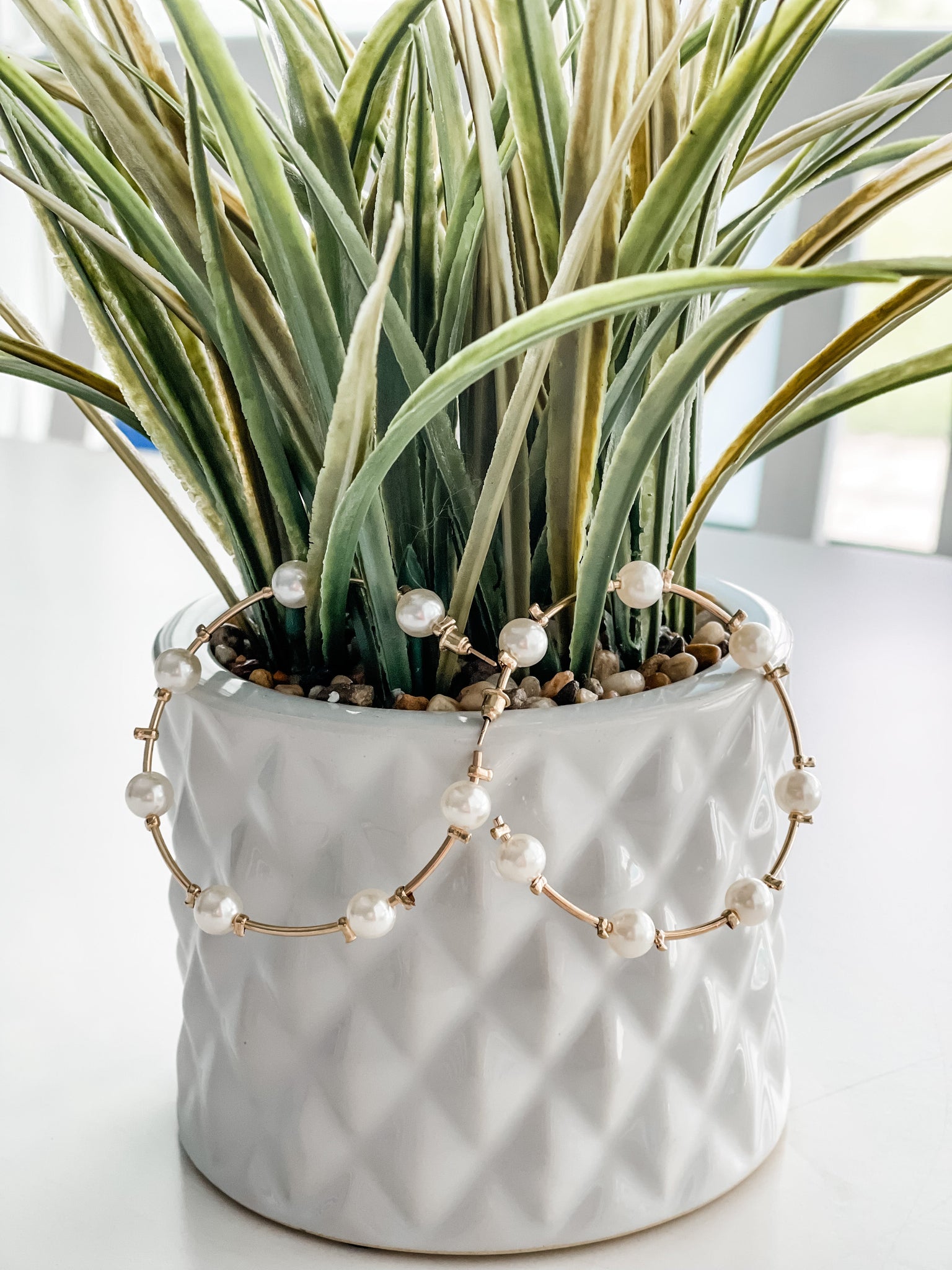 These beautiful hoop earrings feature pearls throughout.