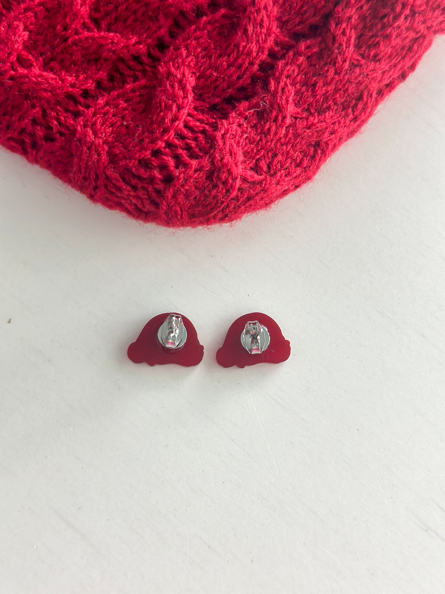 🎅 Santa Hat Design: Add some festive fun to your look with these glittery Santa hats!💎 Hypoallergenic: Crafted with titanium steel and acrylic, these studs are hypoallergenic and safe to wear.