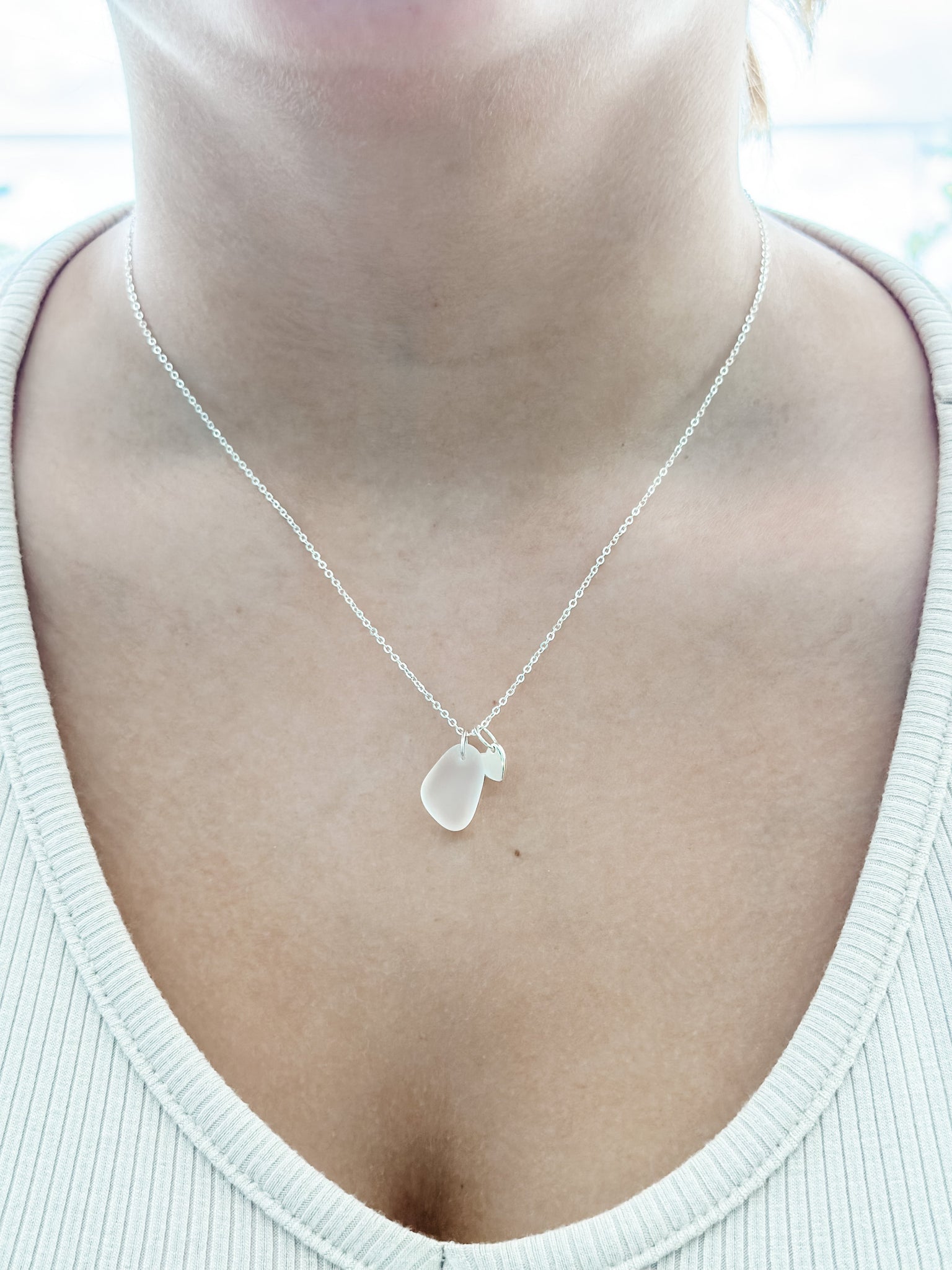 • Load image into Gallery viewer, "Shelly Seaglass" White Silver Necklace