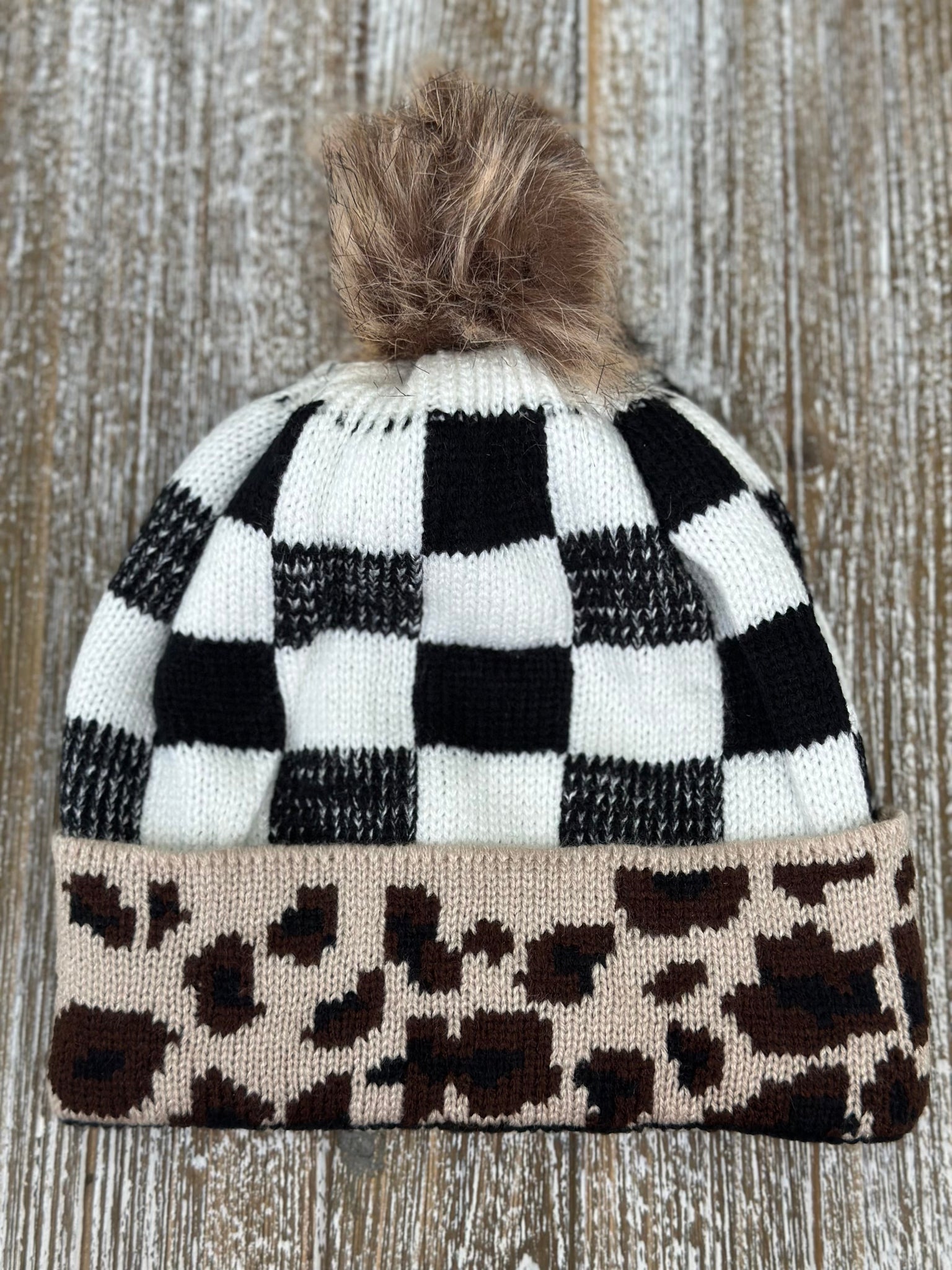 "Wildly Checkered" Pom Beanie